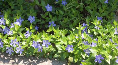アプローチ脇のツルニチニチソウ